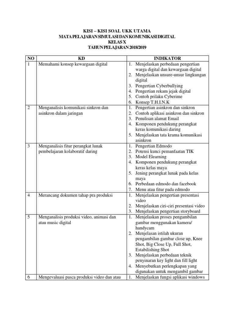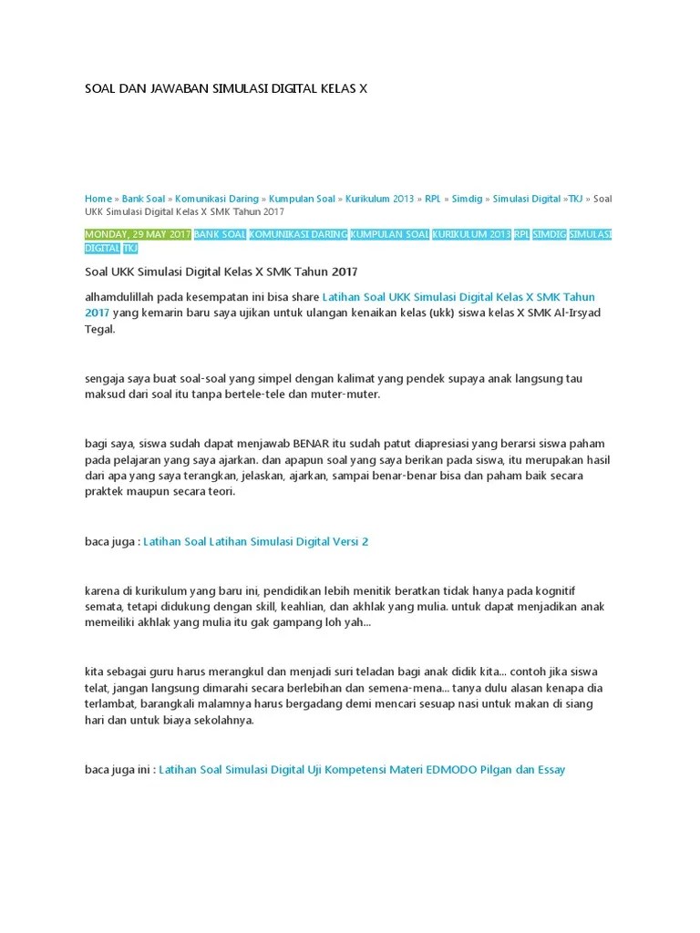Kisi kisi komputer jaringan dasar x tkj lengkap ganda plus uraian 2018. Mata pelajaran simulasi digital sekarang dikenal juga dengan nama simulasi dan komunikasi digital sikomdig. Simulasi dan komputer desktop b. Soal ukk simulasi digital simdig semester 2 kelas x smk untuk tkj dan rpl yang bisa dijadikan referensi bagi anda. Soal simulasi digital semester 2 dan jawabannya :